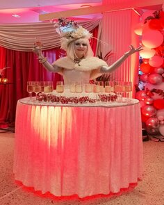 Our fabulous Showgirls will welcome your guests while our Living Drinks Tables present drinks, canapes, or other items on arrival.